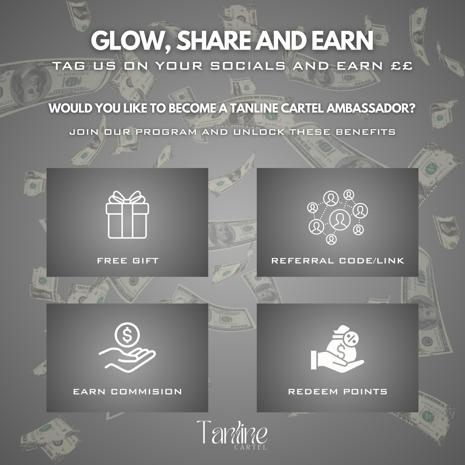 You will receive a free welcome gift, personal share code/link, earn commission, redeem rewards, exclusive discounts and early access to unreleased products.